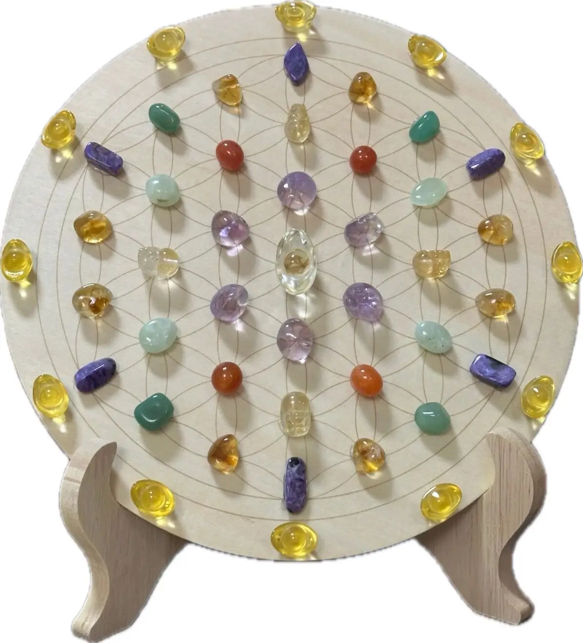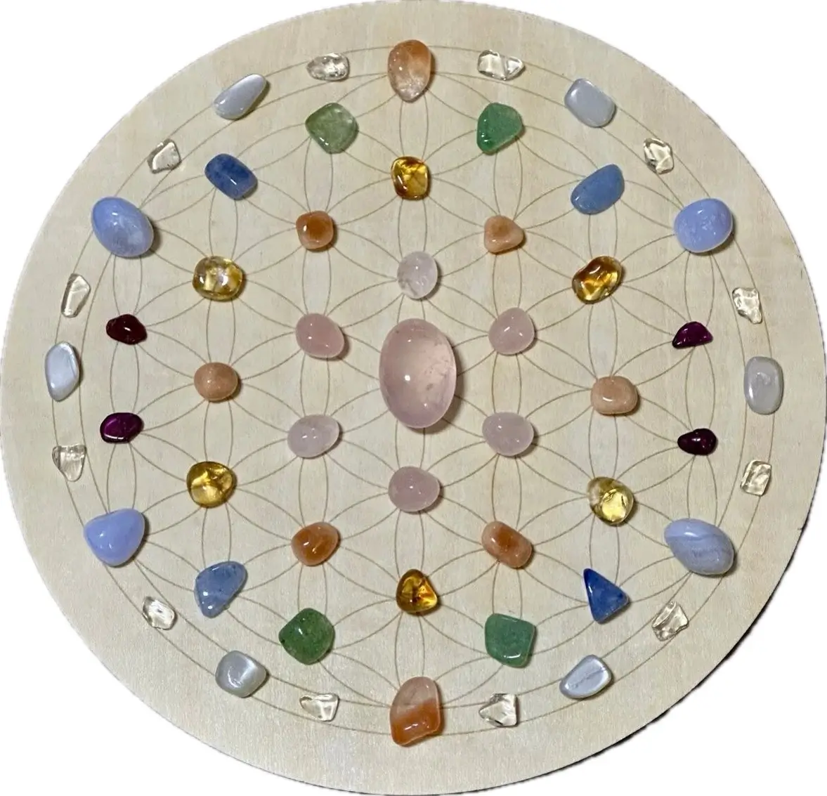 Place your grid where you spend most time — on your desk, beside your bed, or in your meditation space. Sunlight cleansing for 1 hour every 1–2 weeks keeps it pure.