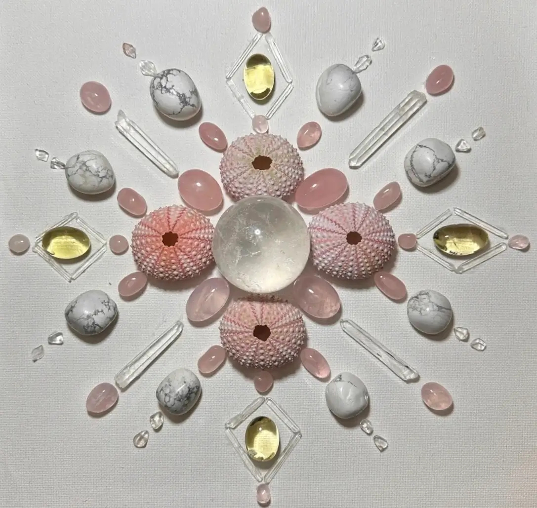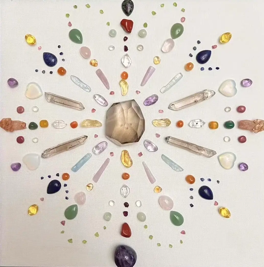 A crystal grid is a sacred arrangement of stones designed to amplify energy, intention, and healing.